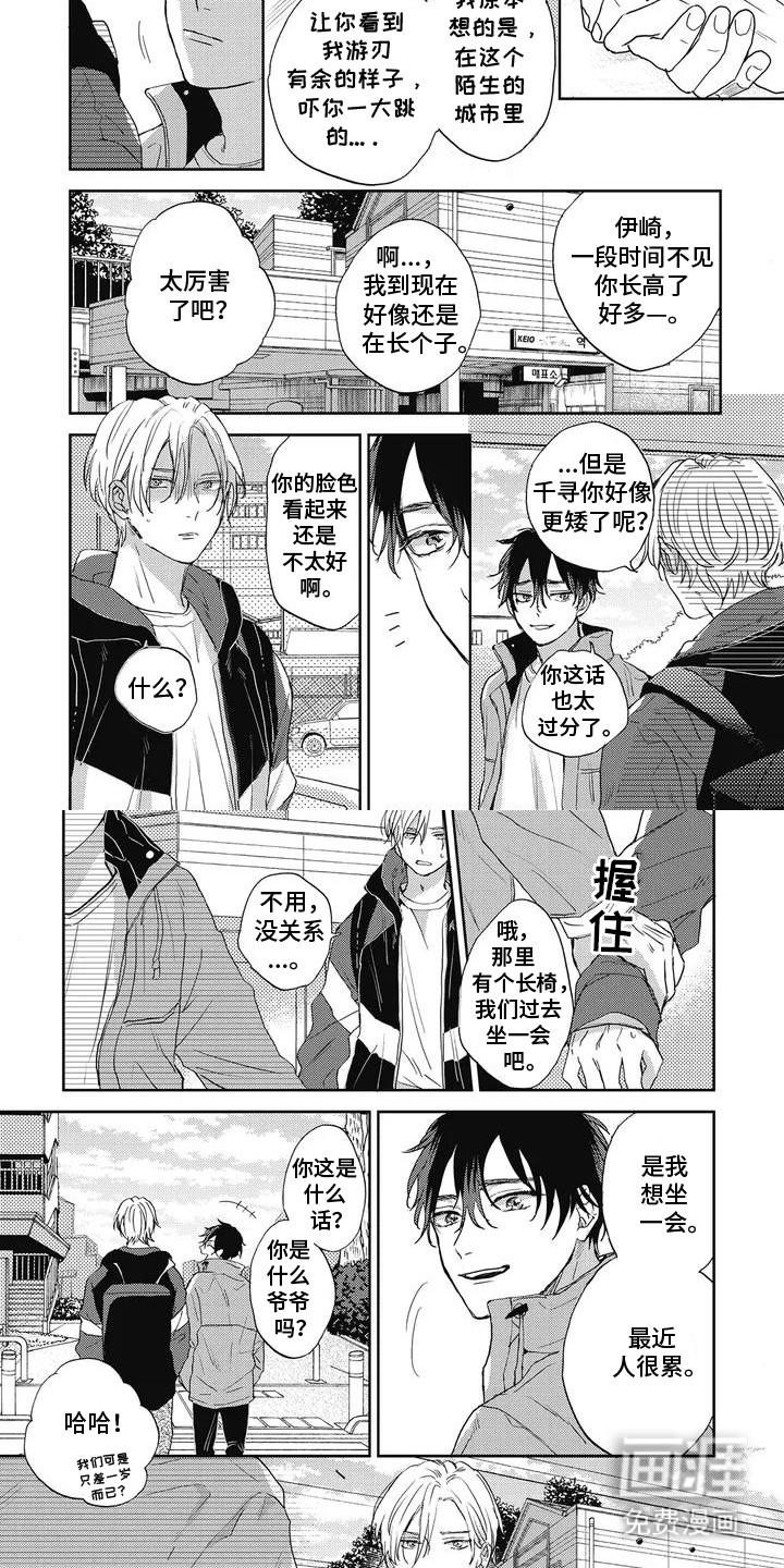 伊崎在春天从乡下到城市上大学,但是第一次进城的他却晕车并且在地铁迷了路。在他缩在墙角难受时遇到了分别几年的竹马千寻……
