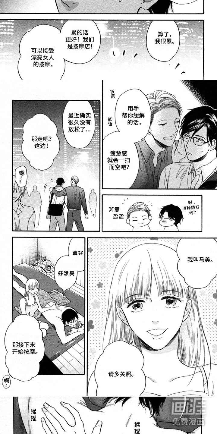 饭浜千寻在疲惫一天的下班的路上遇到了在按摩店揽客的黑智劝说进来按摩一下放松放松,结束后饭浜千寻钱包不小心掉店里,黑智在上面发现的地址便寻找了过去阴差阳错下二人的缘分开始了。