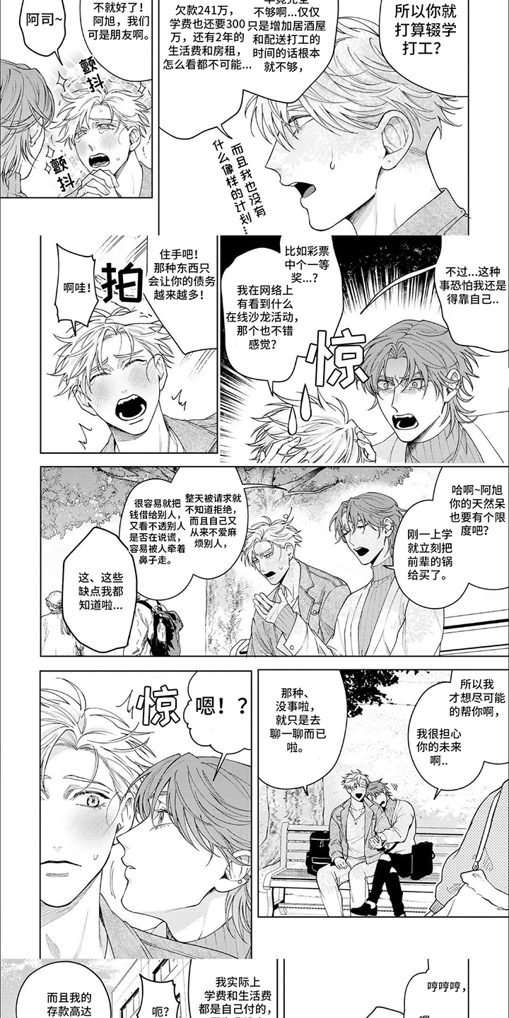 成海旭由于父母车祸欠了一屁股债,在朋友的介绍下进入牛郎店工作一眼就被店主诹访莲看中了,并在相处中用可爱击破了诹访莲内心使得他对成海旭产生了占有欲...