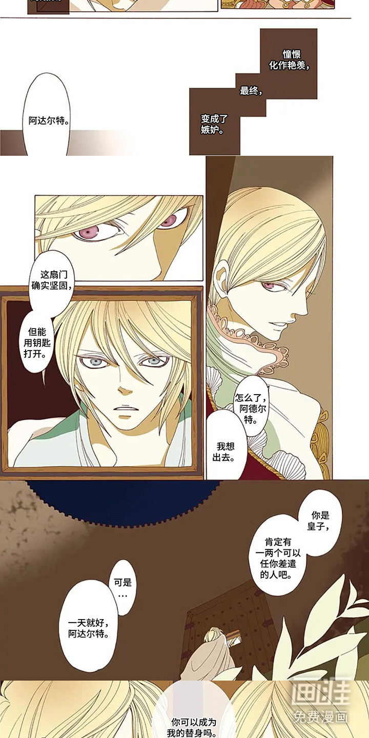 【当枷锁与王冠互换|囚笼中的影子成为了宫殿唯一的光】地牢里的阿德尔特与王座上的阿达尔特,拥有着连生母都无法分辨的相同面容。一个在黑暗中攥紧锈蚀的铁链,一个在宝座上厌倦了金线的重量。那场蓄谋已久的暴雨之夜,两人在镜面般的瞳孔中窥见了另一种人生。一次无声的交换,让影子披上了王袍,让骄阳堕入了囚笼。当帝国因“皇子”突如其来的仁慈而震动,当边境因“囚徒”燃烧的野心而战栗——这场始于谎言的命运互赎,终将成为颠覆两个世界的开端。 双生错位 × 命运悖论 × 镜中人对决 “现在,你是我最完美的赝品…还是我甘愿