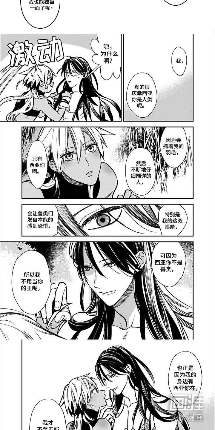 被遗弃在人类世界与野兽世界交界处的婴孩——西亚,自小在狼族一家长大。 野兽之中最具神性的兽王——禅,拥有近乎于神的外表。 一直把禅视作挚友的西亚,可以无视兽王身份与他打闹嬉戏。当他知道禅即将公开选择自己的伴侣时,居然祈求狼爸,让自己成为新娘候补,参加选亲大会…!?(小编觉得超好看~)